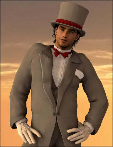 The Ultimate Morphing Tux includes all the above, plus a Morning Coat, spats, gloves, socks, waistcoat and untied bowtie.