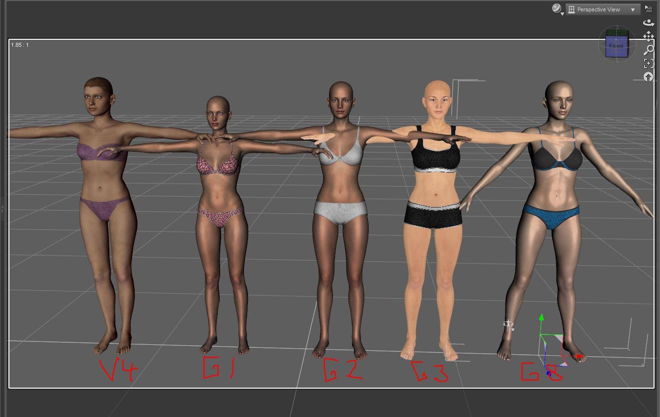 Applying a G8 pose to the older generations: Much Mayham ensues in all the other generations, even G3, due to the different base pose of G8.