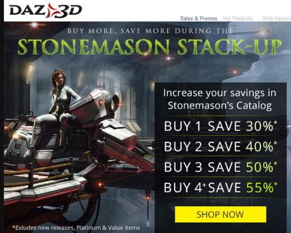 Yes, last November his store was on a 50% sale, right around the time another one of Daz's crazy tiered sales was ending. All those that reached the top tier got a 40% or 50% off coupon which worked on all the PA stores that were in the sale. Stonemason's was one of those. So it was over 70% off but that is the only time I've seen it that high.