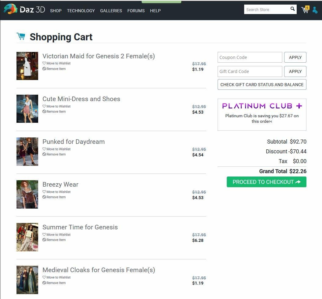 DAZ_Steve, it still doesn't work for me. Perhaps someone can tell me whether I have made a mistake with the items in my cart.