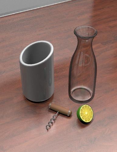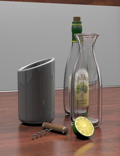 I did have to upped the ray trace depth to 8 to get all the refractions showing. Rendered in about 3 and half minutes with my 4770K. Still need to tweak the settings on the cork and corkscrew. There was a time where I didn't think such scenes is possible with DS.