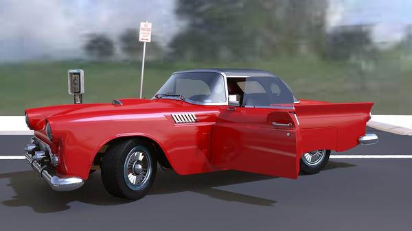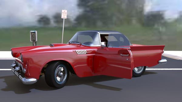 That was sort of what I meant, car paint usually captures reflections like a muted mirror, like the reflective floor I made for that backdrop. I actually thought the reflections in the T-Bird were maps.