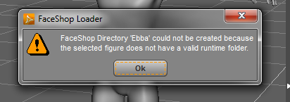 "FaceShop Directory 'filename' could not be created because the selected figure does not have a valid runtime folder."
