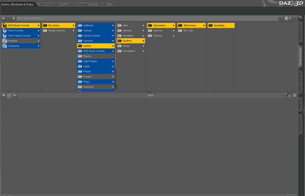 I have used both its older installer as well as the new DAZ DIM installer that they are pushing right now.. resulting in the same problem. After using content library to brows to and find the installed content I click, double click, and or drag and drop into a new fresh scene and nothing happens. Also nothing appears in the Scene tab to the right that holds all elements of a scene. I tried looking in the folder that are supposed to contain the files and they are there as far as I can see. I was able to get kinda close after trying a few things but even then only the lights loaded and it keep asking me for texture locations ... then ending with a error screen...HELP ????