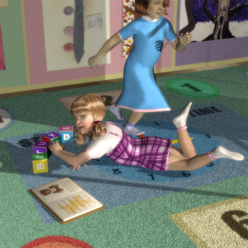 I upgraded the kids textures to UberSurface2 and gave them the usual makeover of reflection mapping and subsurface scatter. One of the nice things about using Genesis is I could use the Philip eyes which came with M5, which don't have baked-in reflections and have impressive settings by default.