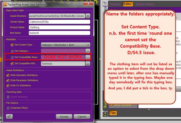 Making Clothing to share. Packaging it up correctly is rather nice to do however items must be created with the source files having been in their correct places first. This enables the created file to be correct for the filepaths it'll search for its parts and makes packaging it up for a share so much easier.