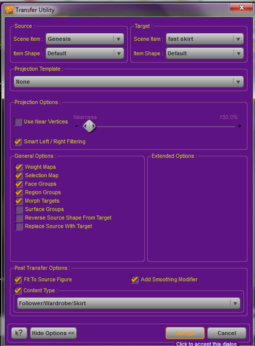 I did try using the transfer utility to add morphs to some of the existing clothes in the Essentials package. They still cut through the morphs on the modified Genesis, so I must be doing something wrong.