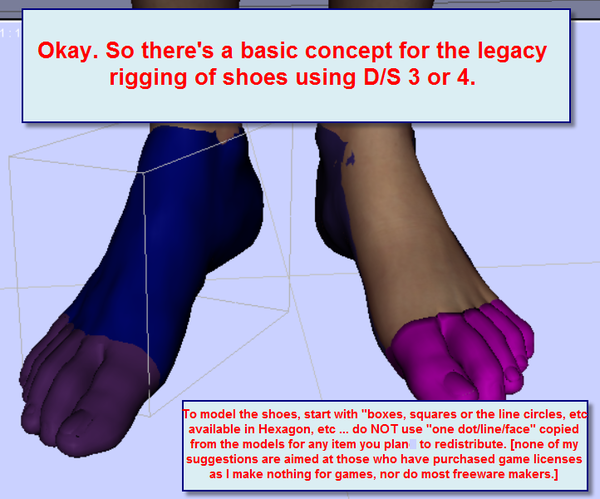 Okay, somebody was wanting some info about rigging shoes in D/S and I seem to have lost the thread ... so I'll put a bit of info here and maybe he'll find it ... or somebody else might like to see this too.
