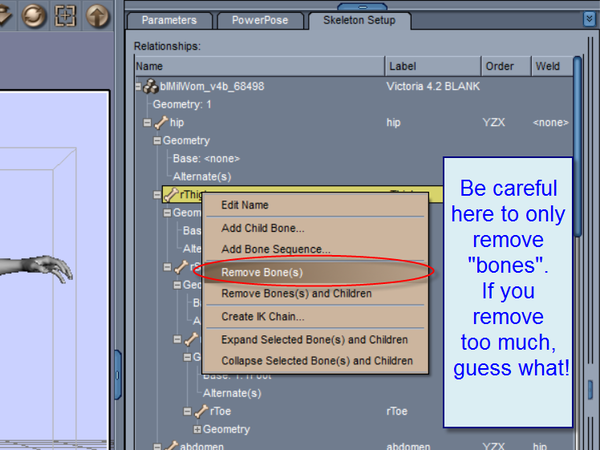 Just to be clear on one point, the actual ends of the bones are NOT changed. Those need to be the same as the one's of the figure or the item will not 'fit to'. What we are adjusting are the parameters for what the bones may do.