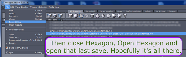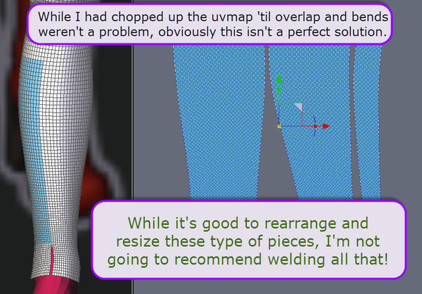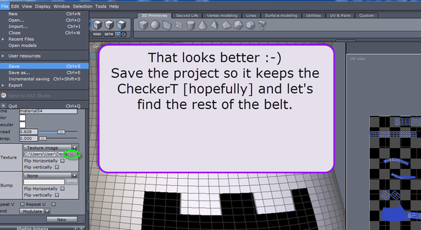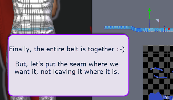 Something cute I've discovered though is that the smoothing procedure for getting a tighter fit about half way through the making of the suit; isn't of course "perfect". It's not going to replace doing the work to make it rather tight fitting in the first place. But this is also good news. Because we can make some clothing items, like sashes [long story], to fit Genesis 'away from the body' enough to allow for clothing items underneath! Yes. So with lemons, make lemonade, add lots of sugar, and enjoy modeling doing what we can with what we've got.