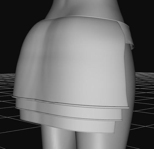 I have a problem with a skirt/outfit item that I am making for Genesis. When I pose it with any female figure where the legs bend, the back of the skirt creases like in the picture below. How can I fix that? I've also included a zero pose pic.