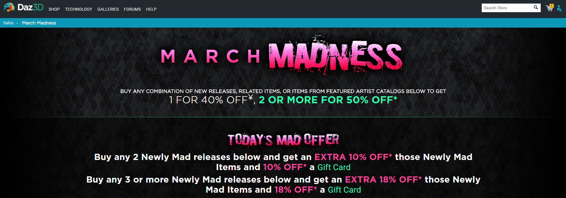 Extra 20% off with Newly Mad item: https://www.daz3d.com/daz-original-select-2016-2017-items