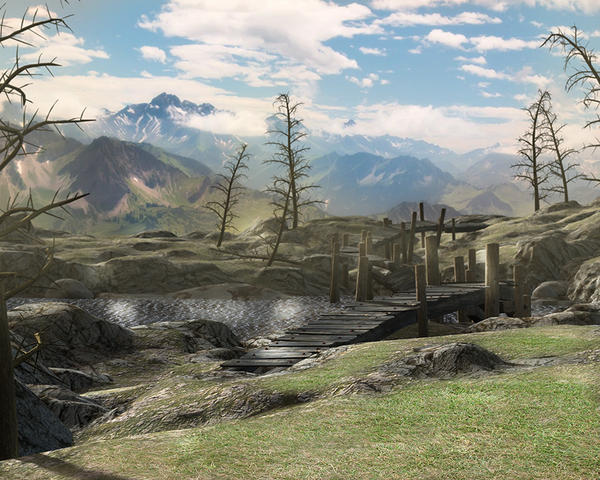 it is possible to achieve a nice pic, with really-really heavy postwork (even need to put reflections on the water in Photoshop, and multitexturing the ground) see the sample pic 2. But that's really heavy postwork, almost 50% is "photoshopped", and a very bit-o-render left:)))