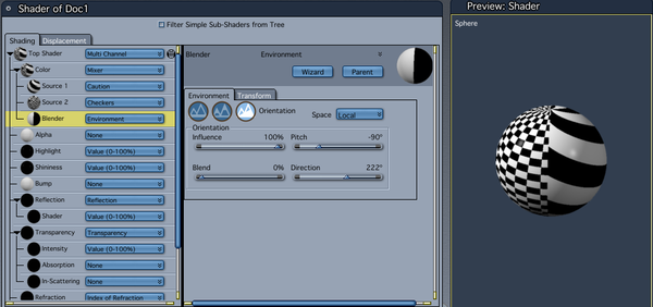 The Environment shader has a rotation control. Set the Orientation tab to 100% influence. Set the other tabs to 0% influence.