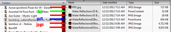 The other picture, water reflections, also for Poser, seems to have no folder structure at all.