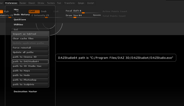 In Zbrush under preferences -> GoZ, does it show an entry for Daz Studio ?