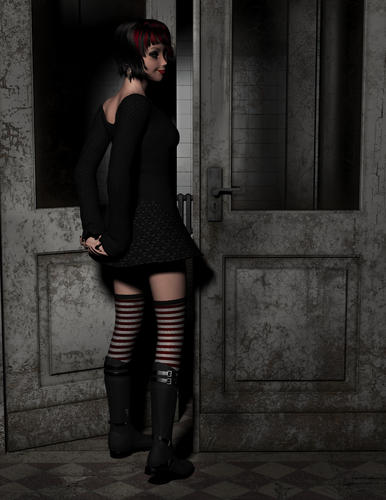 Goth girl, using a dial spun Genesis and manupliated Tori V5 skin, with the base shader, skin2 applied.