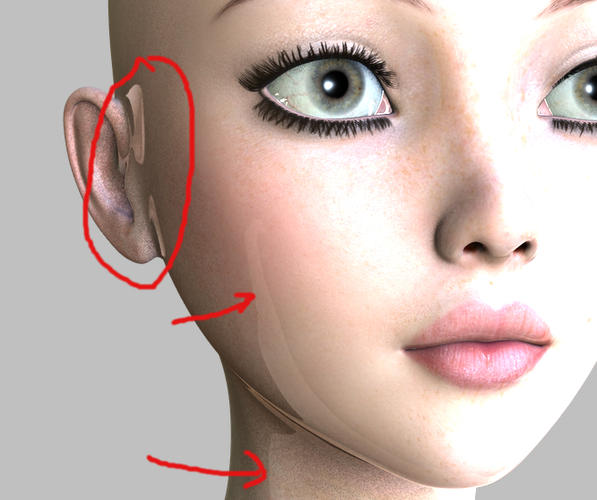 Lighting setups and other settings are identical. I like the way the light on the skin shows back-scatter..