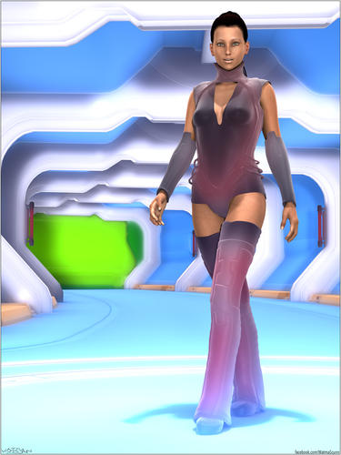 My first render with the Gummy shaders applied at the Floor and clothes, also with the SSS shader at her skin (just playing with the settings for the skin...)