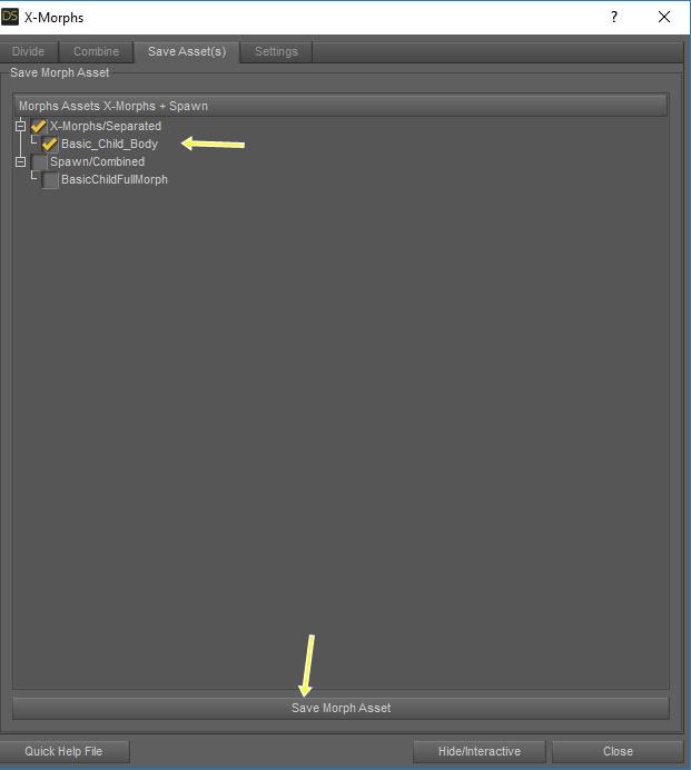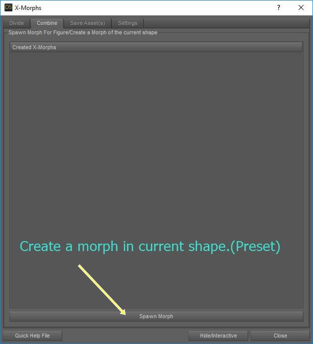 2.- Run X-Morphs and Click Spawn Morph.Combine, and save "BasicChildFullMorph" (It allows you to create a morph, with all the characteristics it has, such as the size of the character.)
