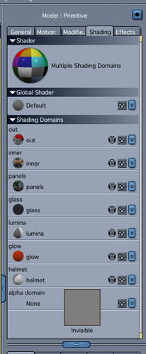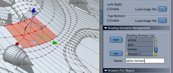 In the VM, select the polys you want for the new shading domain, then at the right of the screen under the Model tab, you can use the pulldown menu to create a new domain, or you can go to the Global tab and do the same thing. The new domain will now show up in the list of shading domains. You can then add whatever shader you like to that domain.