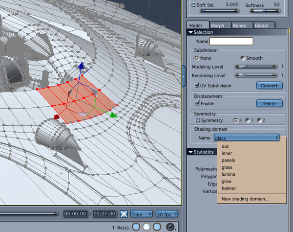 A question came up about ways to hide a mesh in a Carrara user's entry, and that went into a little discussion about the vertex modeler. The gist is that I'm trying to post some tips to help the Carrara user shorten the windscreen on a motorcycle model using basic vertex modeler techniques. I would prefer non-destructive techniques so as not to collapse the UVs.