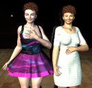 Aiko3 Beatrix, by Kimber on the left in the A3 Babydoll dress; GenX'd Beatrix for Genesis A3 on the right in the eblank Short Dress. For some reason, the "Realistic" morph comes through more strongly on this character in Genesis than in the original A3 character. I also don't have similar or converted textures for A3-V3/V4, which contributes to some of the differences. Genesis Beatrix has Adam Thwaites' Rosalea special materials texture, while A3 Beatrix has one of the free Victoria3 textures from Vanishing Point.