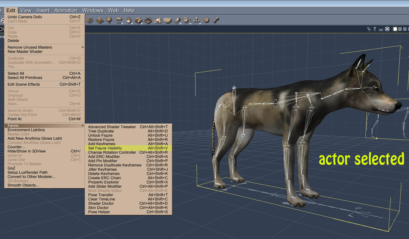 The text file does list Change Bone Visibility, also I cannot find a reference to the Set Figure Visibility in the Extensions folder that is in the list (was it there before???). I have a lot of his plugins, but only ever really use CBV. The other extensions work except for that SFV one. Is it a mis-name in his programme? Maybe to do with the Poser conflict? WHAT IS THE SHORTCUT FOR Change Bone VIsibility... is it the same at the Set Figure Visibility one in my screenshot of the Assembly Room list?