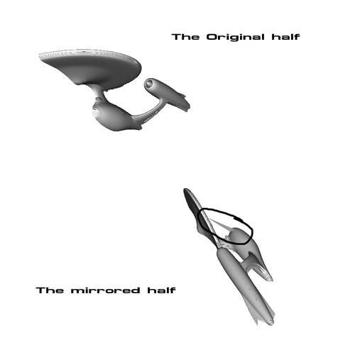 Had this model awhile back. Some of you might know it as the Retroprise. You only get half the ship. You have to mirror it and merge the two halves to get one model. Well, I decided I wanted to replace my copy. Buy I can't get it mirror clean. I'm trying to use UV mapper.