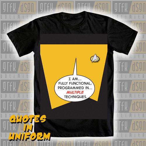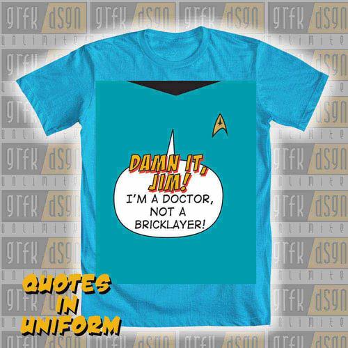 I like the t-shirt designs. I have a shirt with a drawing of McCoy saying "Damnit, Jim! I'm not a doctor, I just play one on tv!"
