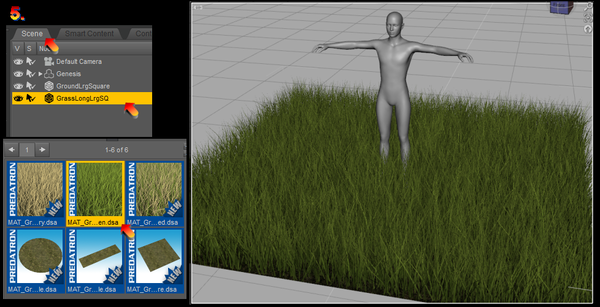 Step 3.Now you go back to Poser Props and load your Grass prop to the Ground plane.
