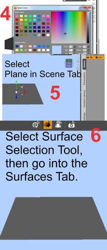 Photo 7 Be sure you are in EDITOR in the Surfaces Tab. If your plane isn't selected, all you have to do is click on it. (All/Currently Used/Plane is in gold.) We'll change the diffuse color (your "base" color.) Click on the black arrowhead (to the right of the last 255)