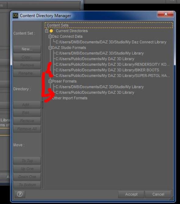 The first way, which I tried first- except that I named some of the folders slightly diffferent from the original product name, (and then placed in a folder I named 'My 3D Library'- I have since moved most of the content into 'My DAZ 3D Library'- keeping the content in separate folders, however, as they existed in 'My 3D Library'.) ...When I would add a product by using Content Manager, sometimes it would work, or the path would end with no product showing. So I would check to see if it belonged in Poser Format or Daz Format.