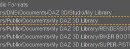 By the way...The path on my computer seems to be: 'C:/Users/Public/Public Documents/My DAZ 3d Library'- rather than: 'Public/Documents'- I don't know if that has anything to do with it. Dm recommends it as: 'Public/Documents'.