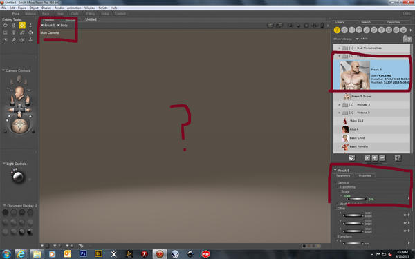 I am using Poser Pro 2014 & have installed DSON - when I load the Genesis character it says it loaded but I don't see it in the scene?? Any suggestions please! I have tried to set Scale larger but figure never appears?! Thanks!!