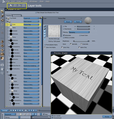 At this point collision detection doesn't work so placing the text is another issue. It's very hard to tell if is just above the object, or just sinking in which reduces clarity any suggestions. I really would prefer to not create a separate graphics element with alpha channel and apply that, I've done it and scaling is a issue and so is scaling the " Sticker" . It is so much easier to just apply text in Carrara.