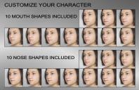 This set contains several mouths, ears and nose shapes to mix them as you wish to get a customized face. Additionally, this pack contains body styles to choose which you want, but if you wish, you can always modify them easily with the weight control and neck & head scale to get the size that you want.