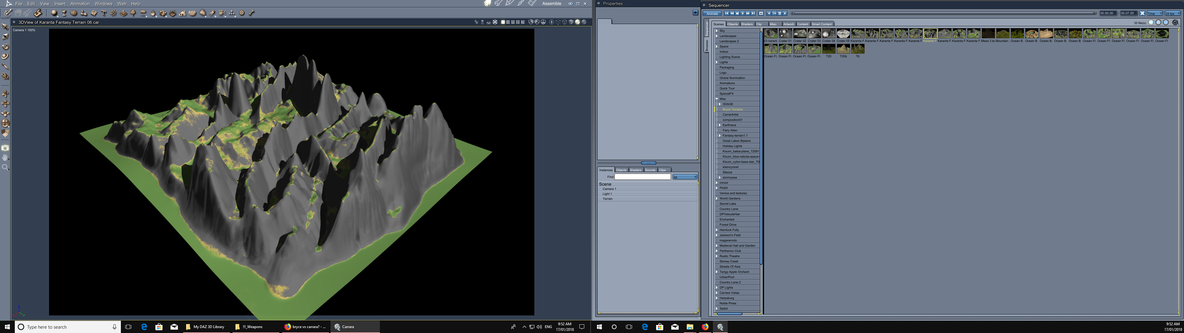 There are a couple of ways of bringing Bryce terrains into Carrara, they can greatly add to the landscape work that can be done in Carrara.
