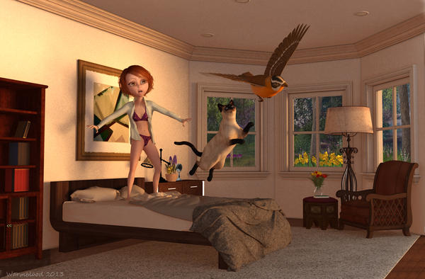 warmblood "Intruder Alert" - nice action (good cat pose) and lovely warm colours