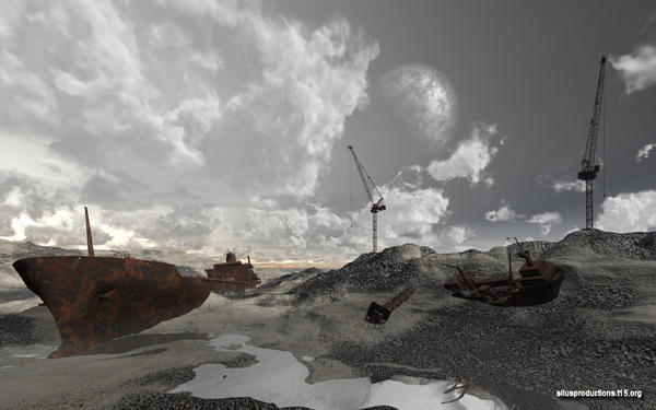 I call it "Unexpected Silence", because after a global disaster dried almost all water, typically crowded and noisy places such as a dock area, became dead silent, with the exception of wind.