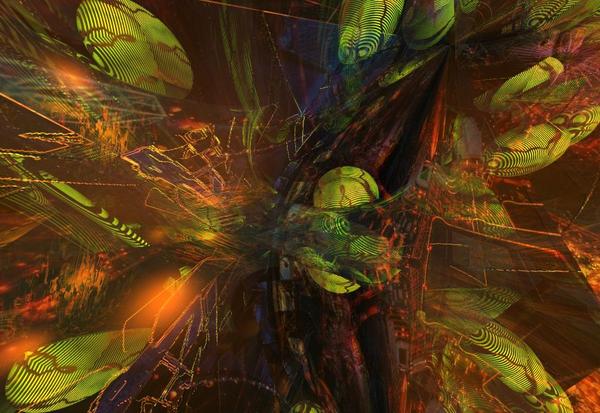 The Abstract scene : unexpected result with only a few primitives, planes and lights.