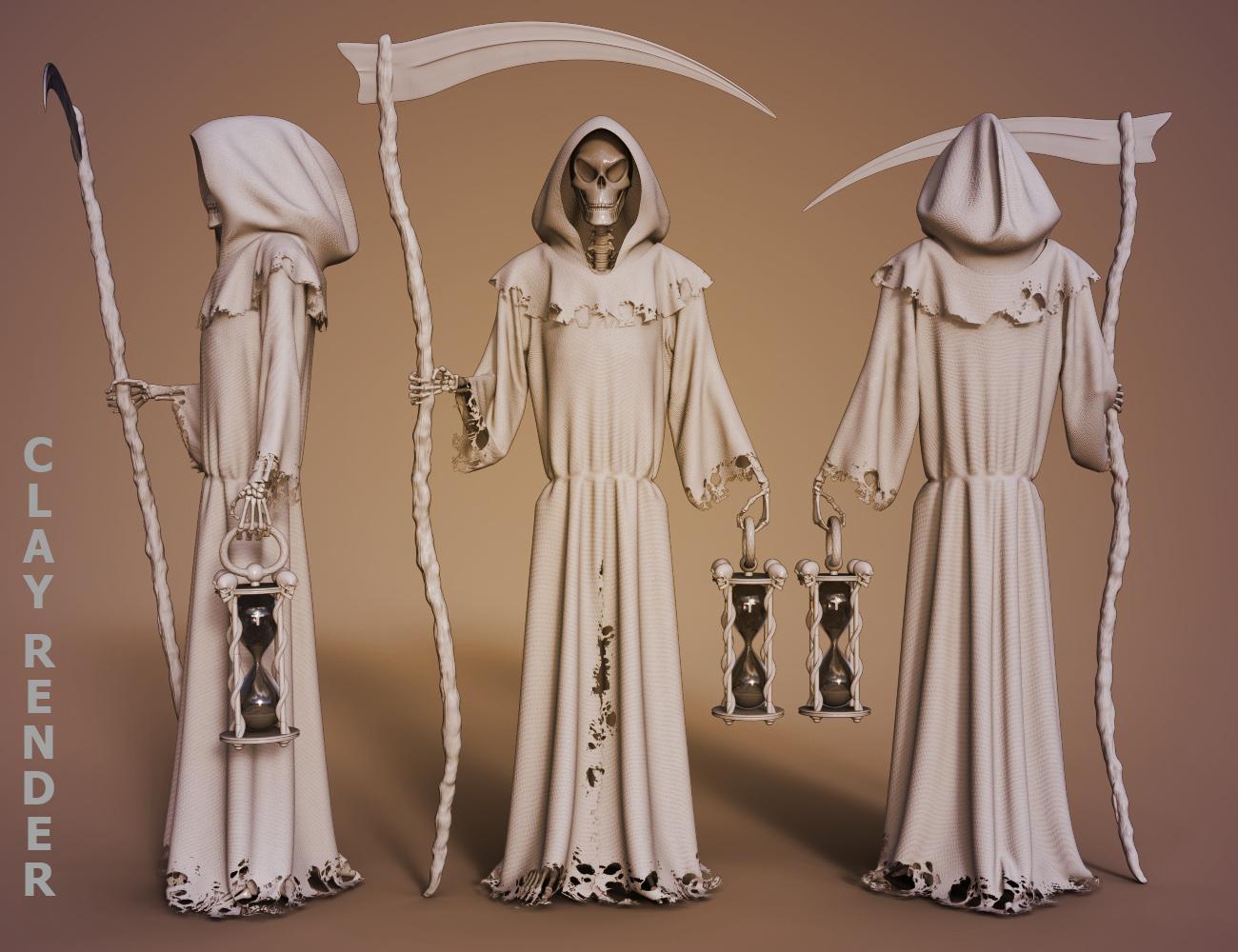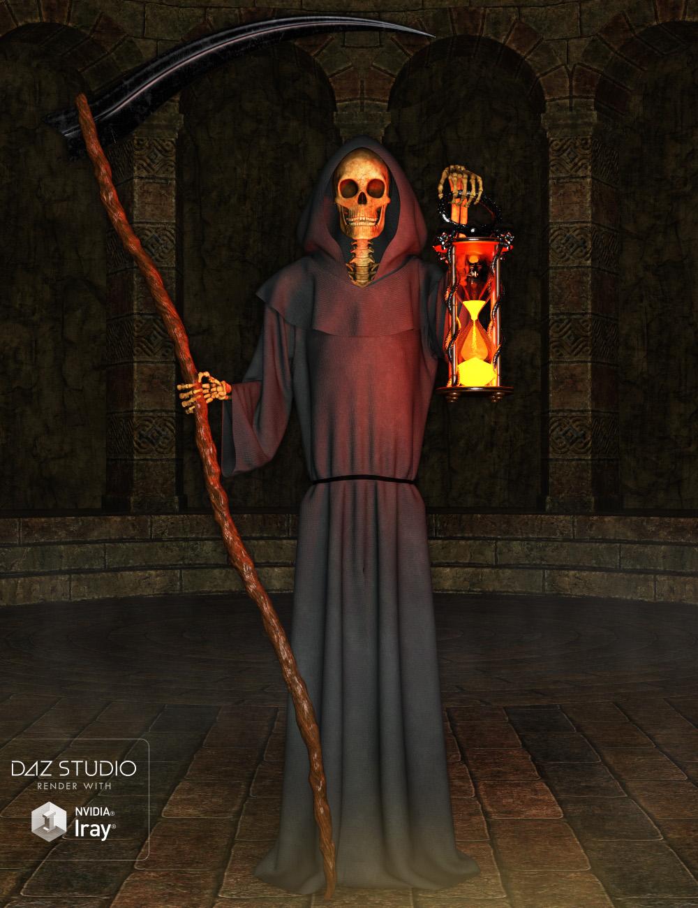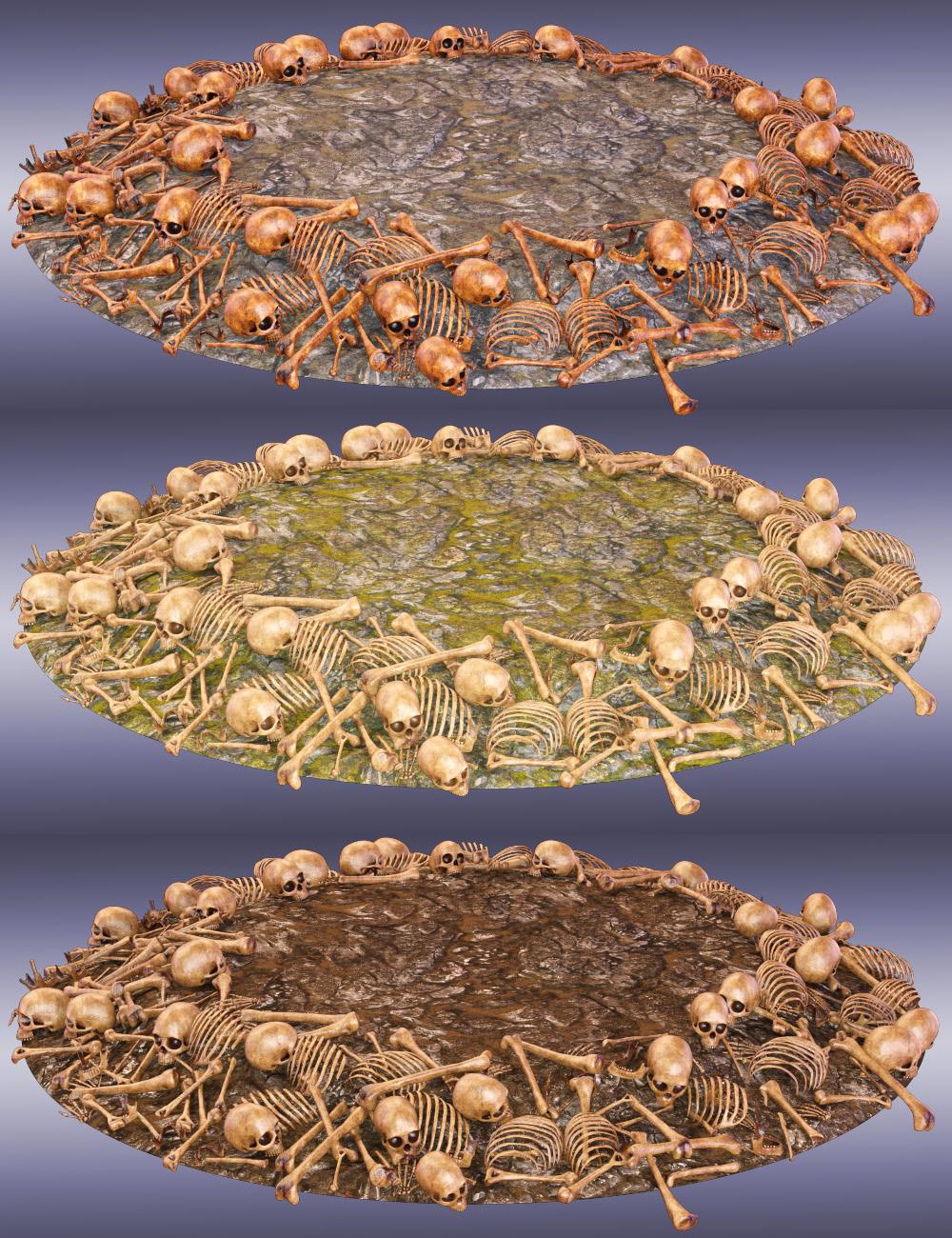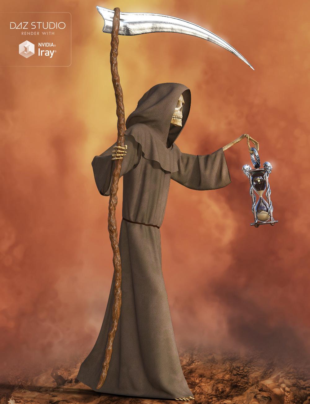 “dForce Angel of Death for Midnight Skeleton” is the first dForce product by Midnight_stories. This is a Dforce only product and uses all the features of the new Daz Studio physics engine. There’s a robe a collar cover, an evil hourglass and a classic reaper scythe. There are 5 material sets black gray brown red and white. There’s also transparency map presets to get that torn and ripped look, plus gold and silver trim can be applied. The hourglass has a glow shader so you can turn it into a light. I’ve made it as easy as possible to use the physics simulation with wearable and sub-set that have the physics weight map already applied, but if you want to get started straight away I have made 2 scenes with everything setup for you, all you have to do is apply a pose to the Midnight Skeleton and hit the simulate button. There’s 7 poses to get you going and 5 Hierarchical Poses with the props already fitted. If in doubt I have provided a walk-through video. So get out there! and start creating you own Angel of Death scene!. As an added BONUS ! I have made a mound with scatted bones on the edges it comes in three different colors. Please note this is only has Iray shader.