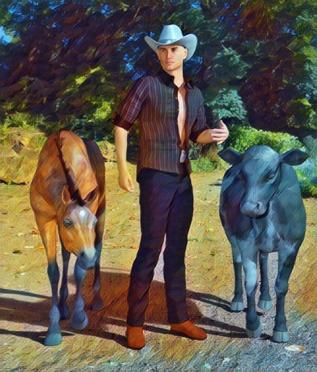 Chace - https://www.daz3d.com/fwsa-chace-hd-for-genesis-8-male with animals filtered in Pic to Painting.