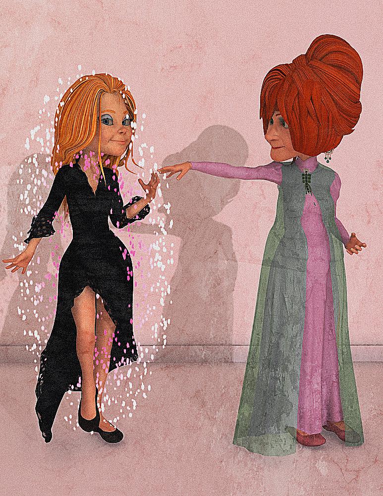 Character design for a Halloween illustration I'm working on. V4 using the "Betty" morphs and hair (in other words, Bettie Page). I'm not entirely happy with it, and I may tweak it a bit before posting it to my gallery, but I thought I'd share it and see what you guys think.