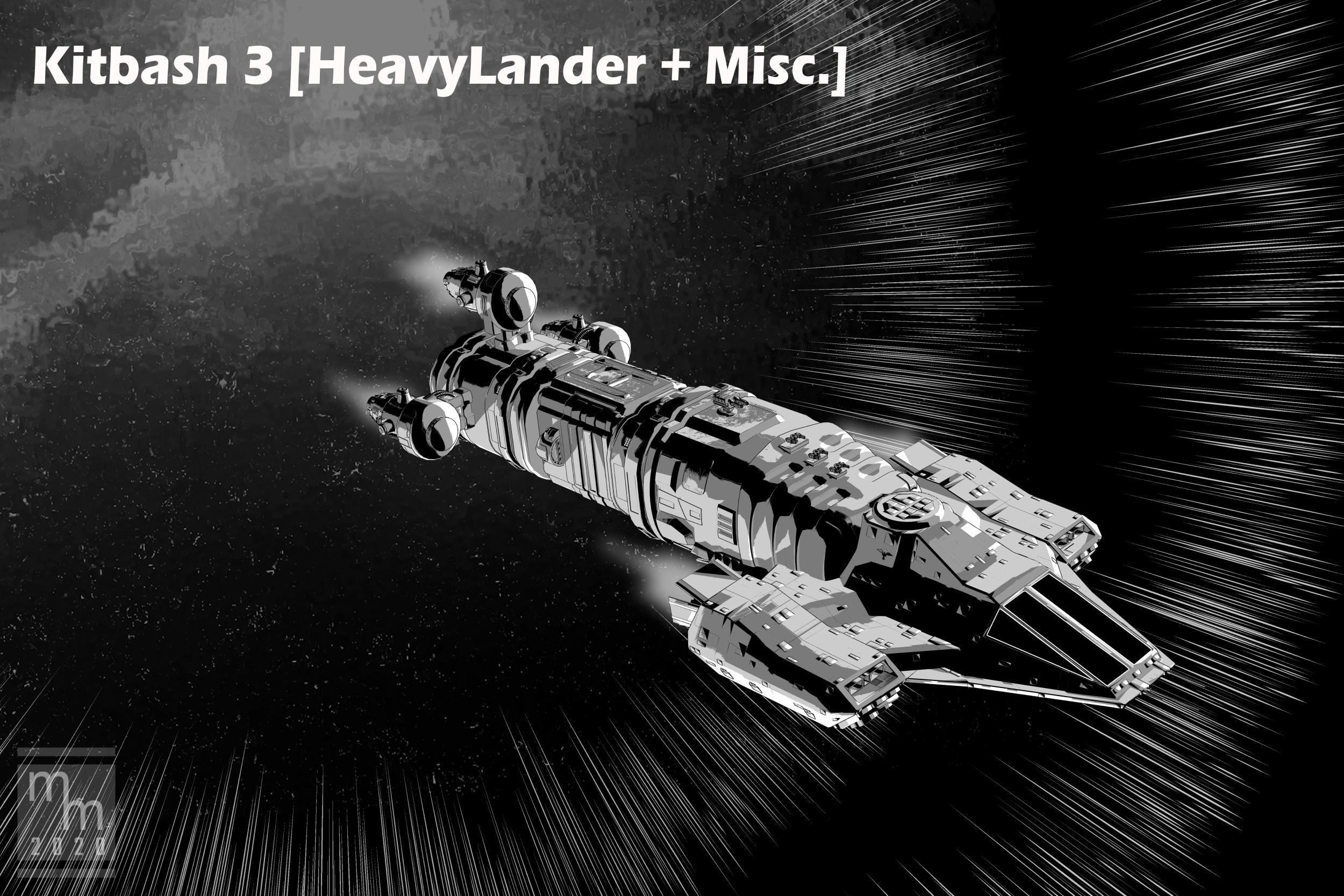 So far the kit-bashing I've been conducting is keeping the front of the Heavy Lander and adding some other ships behind it. I'm going home to work on some more ships, and then I'll post the most likely contenders.