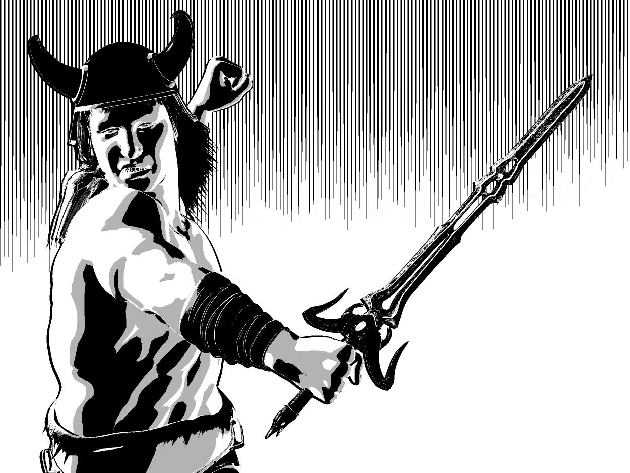 A second try at a Conan the Barbarian image. I'm having lots of technical issues, and obviously one of them is with the hair (it's gotta go!). Still, not too bad for a 1-hr diversion when I should have been working.