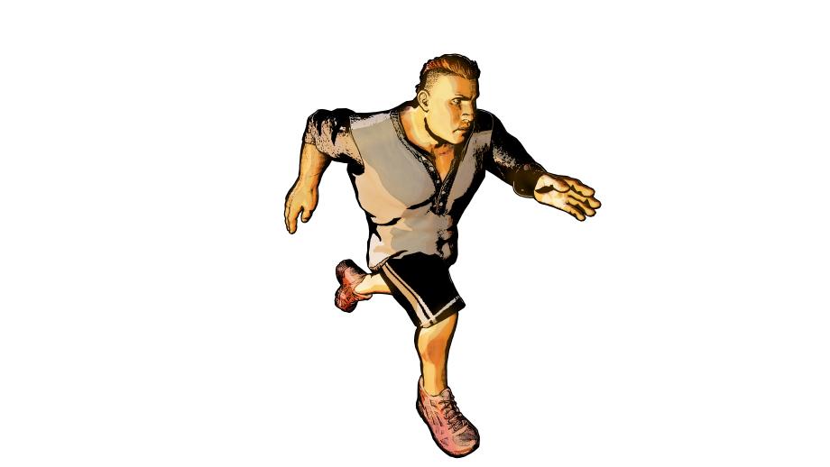The running character was created in Adobe Fuse. I used that one so my students on Udemy could also create the character and follow through the process of recreating him.