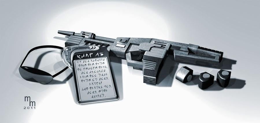 EDIT: Since I'm dusting off these old pieces, I thought I would toss in this illustration from the equipment chapter of the game. Just some gear from different planets and technology levels.