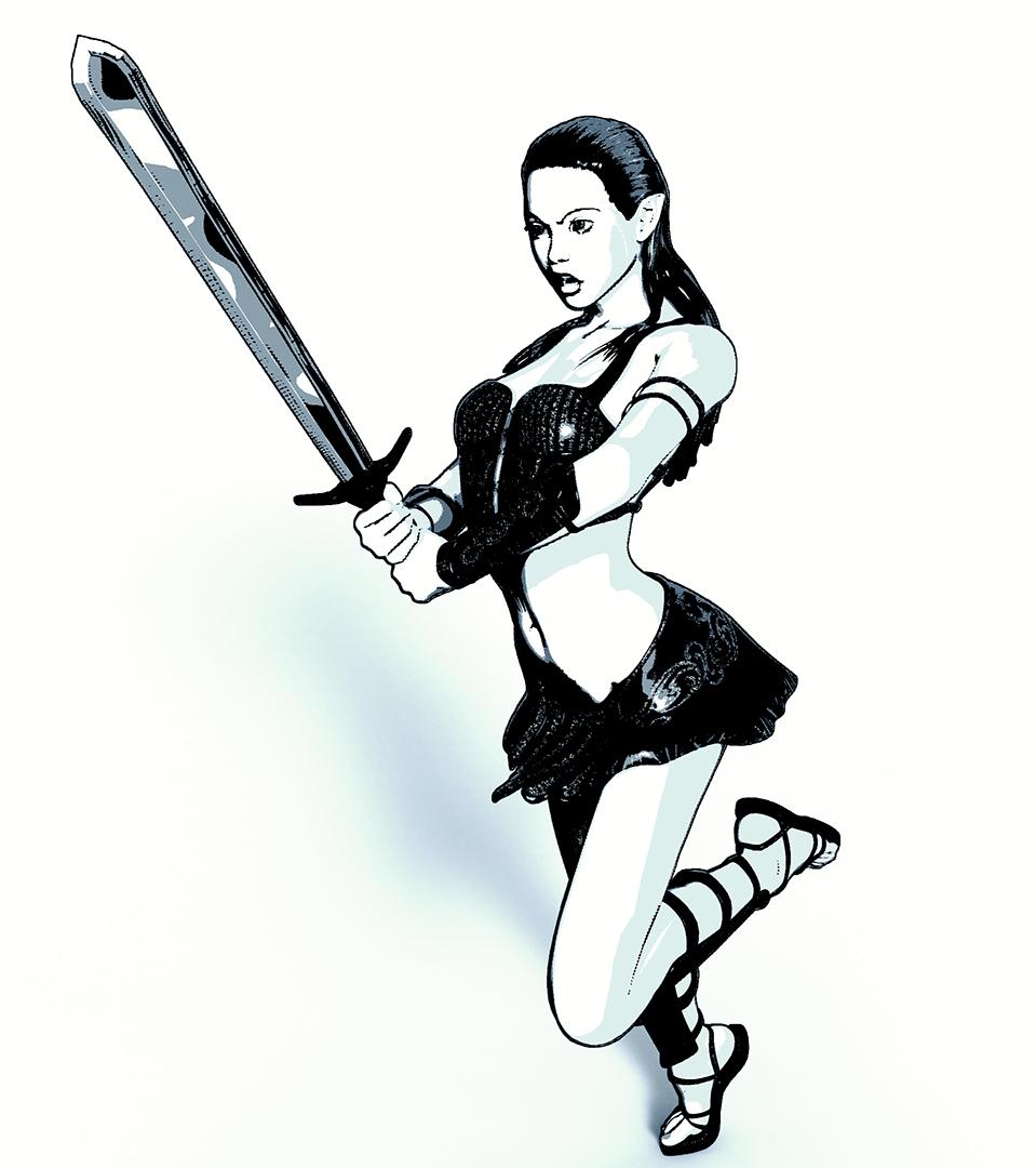 I have redone my warrior girl image using V4. I tried to keep the line work a little more crisp.