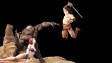 BTW: I think te poses of the other two figures are great. They have that classic Frazetta look to them.
